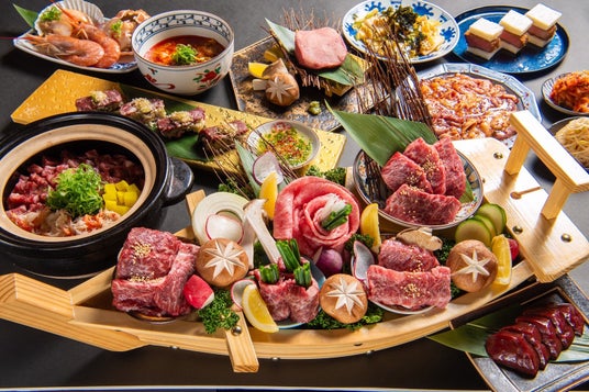 和牛5種盛りを4人前以上の場合は豪快な和牛船盛でご提供します。なんとお値打ち価格6999円!