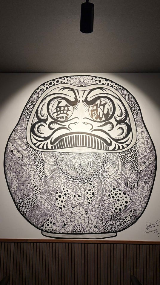 震災や火災を乗り越えて、「どんなことがあっても立ち上がる」という想いを込めて、GOMAさんによる迫力あるアート作品を描いていただきました。ご来店の際はぜひ注目してみてくださいませ。