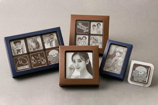 従来のフードプリントで主流だった食用インクではなく、ホワイトチョコレートのみで写真やイラストを再現します。チョコ本来の風味を損なうことなく、贈る相手を驚かせる高精細なデザイン表現が可能になりました。