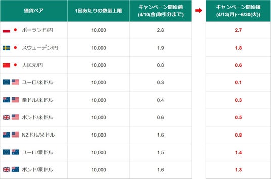 キャンペーン対象通貨ペアと縮小スプレッド (3/3)