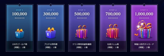 全世界での合計登録者数に応じて、正式サービス開始時に配布されるゲーム内特典が段階的に増加するキャンペーンを実施しています。