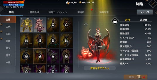 さらに「降臨」「ペット」「紋様」「装備強化」など、キャラクター強化システムも充実しています。