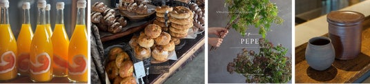 ■LOCAL AGRI岡山・瀬戸内の生産者による野菜や果物、加工品が並び、つくり手と直接会話をしながら購入できます。吉備中央町のチーズ工房「吉田牧場」のチーズや、愛媛県宇和島市の柑橘農園「Tangerine」のみかんジュースなど、こだわりの商品が揃います。