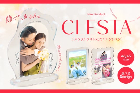 賃貸でも安心、置くだけで空間が垢抜ける新感覚アクリルスタンド「CLESTA(クリスタ)」が新登場。デザイナー監修のオリジナルデザインのアクリルスタンドが大切な思い出を彩ります。