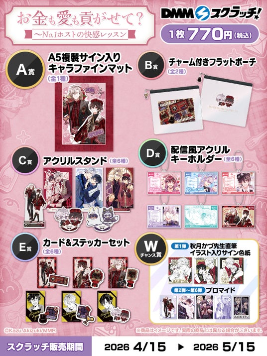 株式会社ファンギルド(本社:東京都新宿区、代表取締役社長:梅木読子)が運営する漫画出版社モバイルメディアリサーチは、BLレーベル「caramelコミック」の人気作品『お金も愛も貢がせて?~No.1ホストの快感レッスン』が、DMM.comのオンラインくじサービス「DMMスクラッチ」にて展開されることを決定いたしました。