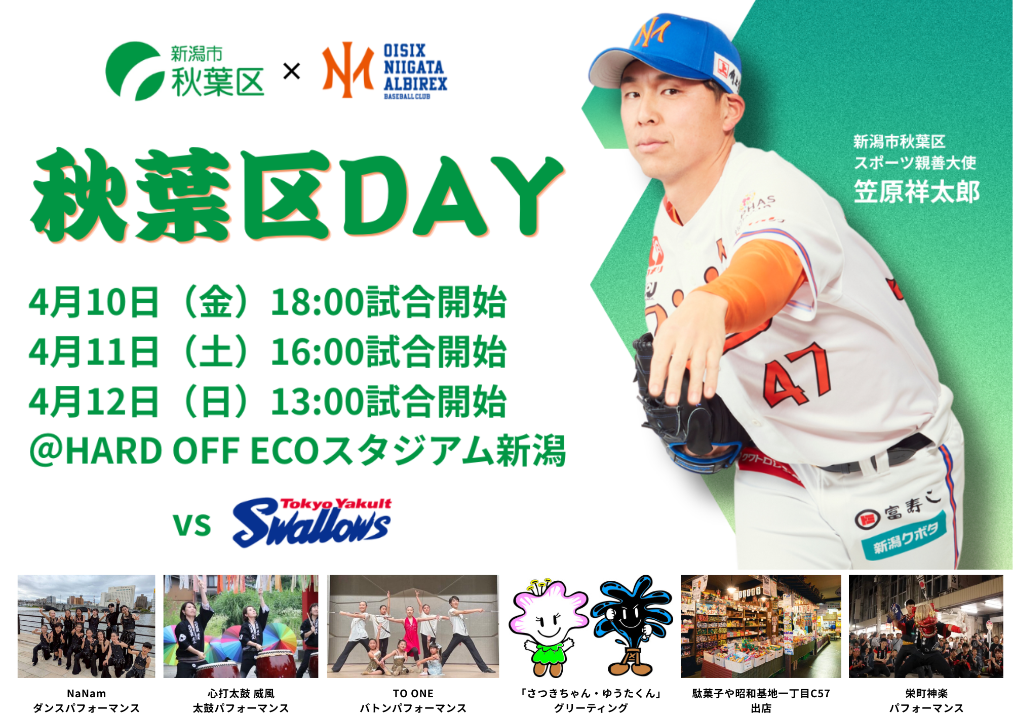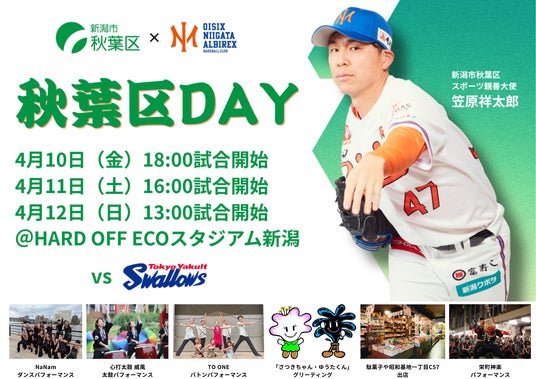 4/10-12「秋葉区DAY」の企画全容はこちら:https://www.niigata-albirex-bc.jp/news/27328/