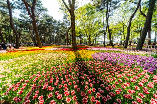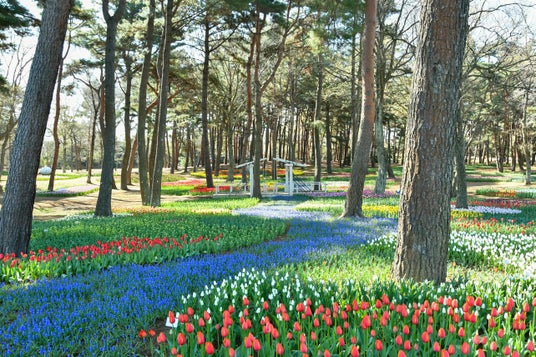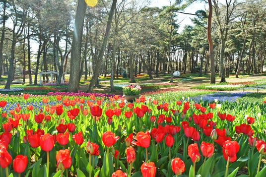 国営ひたち海浜公園の「たまごの森フラワーガーデン」では、昨年より25品種・約1万本多い320品種・約28万本のチューリップが4月1日(水)から咲き始め、4月7日(火)からは5分咲きを迎えます。今年のチューリップの見頃時期は平年並みで、4月11日(土)に見頃を迎え、その後25日頃まで続く見込みです。色とりどりの花々に囲まれた、まるでおとぎ話の世界をお楽しみください。