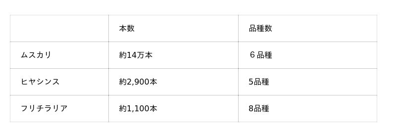 今年はチューリップの球数、品種数の増加だけではなく、チューリップの持つ香りを楽しんでいただくエリアが誕生しました。また、昨年に引き続き、ムスカリやヒヤシンス、フリチラリアなど「春を代表する球根」とのコラボレーションもお楽しみいただけます。1.香りのするチューリップを集めたエリア