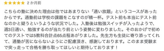さらに、季節講習では他塾の半額以下の費用で毎日5科目の個別指導を受講でき、