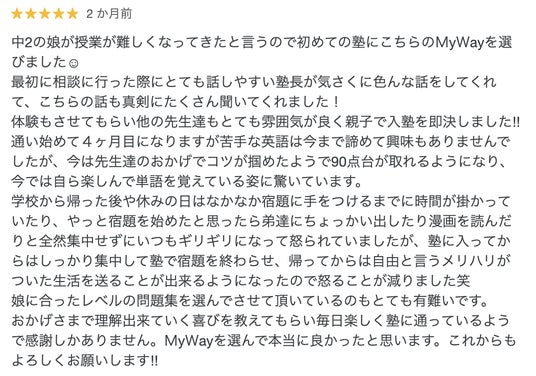 この思いから、My Wayは「5科目定額・通い放題」という新しい学習システムを生み出しました。