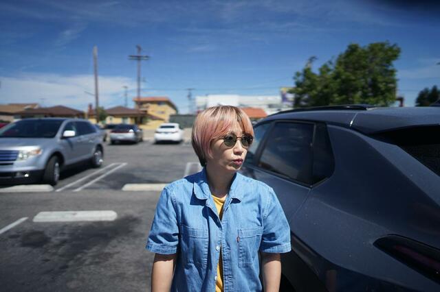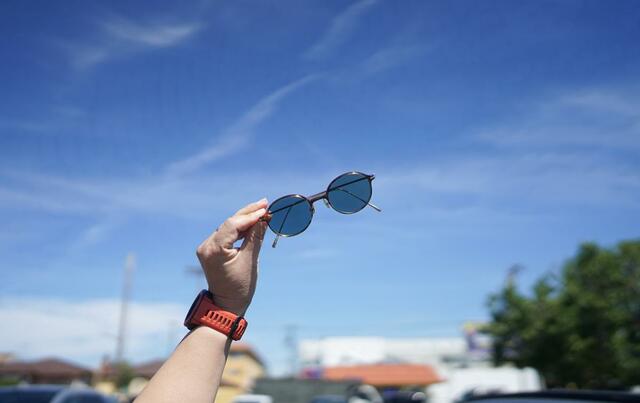 屋外に出た瞬間、紫外線に反応してレンズがじわじわと着色。