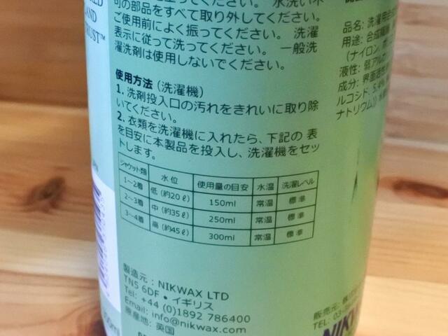 この洗剤を使うときは、必ずウェアの洗濯表示を確認しましょう! 今回はバケツで手洗いしましたが、洗濯機OKの表示があれば使用可能とのこと。