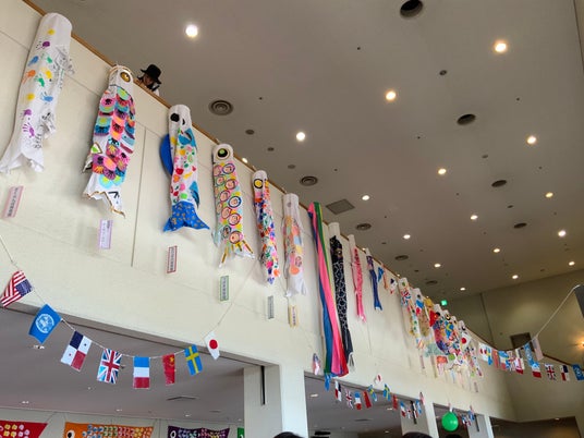 写真:深谷市内の保育園が制作した鯉のぼり展示
