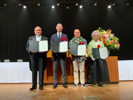 写真:姉妹友好協定を結んだ4団体(社会福祉法人深高会 NUBES児童合唱団 St.Paul Christian School セッピョル幼稚園 それぞれの代表者)
