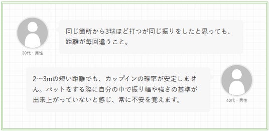 本調査では、約9割が「同じ距離でもパットが安定しない」と回答し、その主な原因として「インパクトの強さが不安定」「振り幅が毎回バラつく」といった再現性の課題が上位に挙がりました。