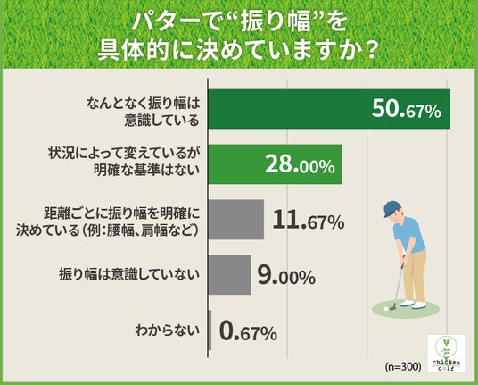 パターで振り幅を具体的に決めているかを調査したところ、「距離ごとに振り幅を明確に決めている」と回答したのはわずか11.7%にとどまりました。