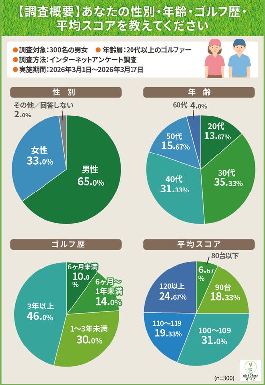 本調査は、20代以上のゴルファー300名を対象に、インターネットアンケート形式で実施しました。