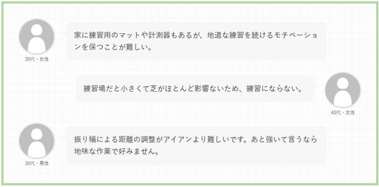 「やったことはあるが継続していない」が最多であることからも、振り幅練習の効果自体は実感しているものの、続けられない壁があることが読み取れます。