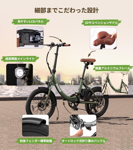 毎日の通勤や買い物における「坂道の辛さ」「乗り降りの不便さ」「駐輪スペースの確保」といった課題を解決すべく、EENOURは走行性能と利便性を高次元で融合させた「S1」を開発しました。