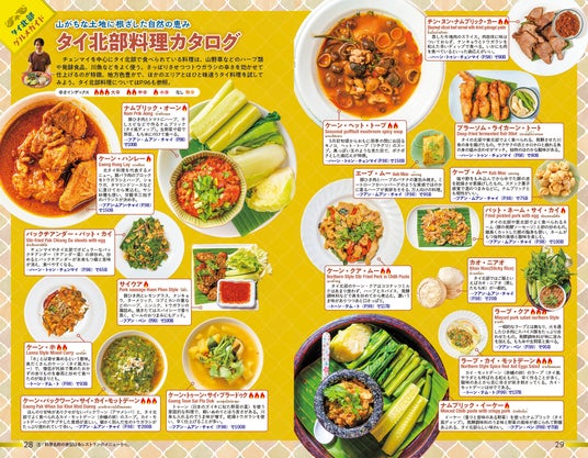 一般的なタイ料理とは一線を画す、発酵文化とハーブが織りなす「北タイ料理」は、地元の人々が通う名店を厳選して紹介。珍しい「赤アリの卵(カイ・モットデーン)」のスープや、雨季の初期が旬のキノコ「ヘット・トープ」の料理などディープな食材もご案内。