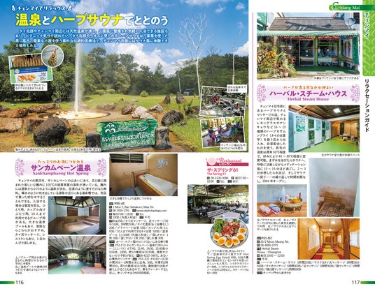 本書は人生で一度は参加したい伝統的なタイ北部のお祭りや、独特な色彩が特徴的なお寺巡り、カレー味のスープ麺「カオ・ソーイ」から、希少食材「赤アリの卵」のスープといったディープなグルメ情報、さらには地元の人々に愛される伝統ハーブサウナまで、編集者が歩いて見つけ出した、検索だけではなかなかたどり着けない「リアルなチェンマイの魅力」を詰め込みました。