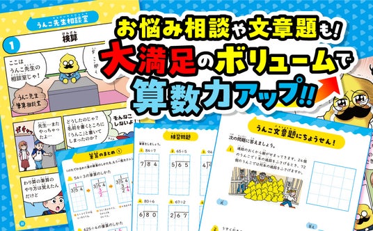 文響社では、この「難しい」「面倒くさい」と感じがちな筆算を、子どもたちが大好きな「うんこ」と「マンガ」の力で、自ら進んで解きたくなるような学習体験へと変えるべく、本書を開発いたしました。