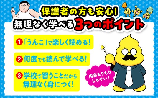 マンガ本編に加え、学習をサポートするコーナーも充実!まちがえやすいポイントを解決する「うんこ先生相談室」や、クスッと笑える「うんこ文章題」など復習に役立つ内容がもりだくさん。