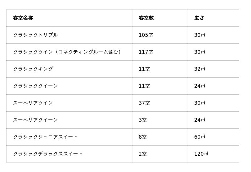 インバウンド増加と多様化する宿泊ニーズに対応、3名利用を中心とした客室「クラシックトリプル」を16室から105室へ拡充