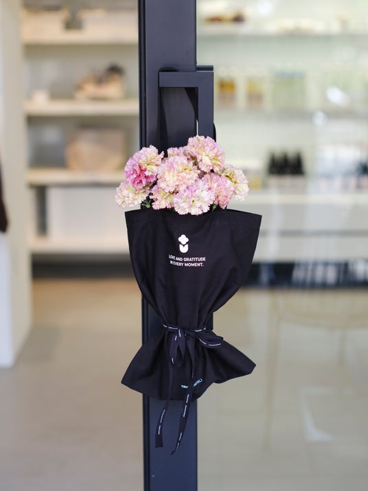 花自体を愛でることはもちろん、使い捨てではないトートバッグで包むことにより、受け取った後も繰り返しご使用いただけます。デイリーユースに適したA4サイズで、ちょっとした外出にも取り入れやすいデザインです。