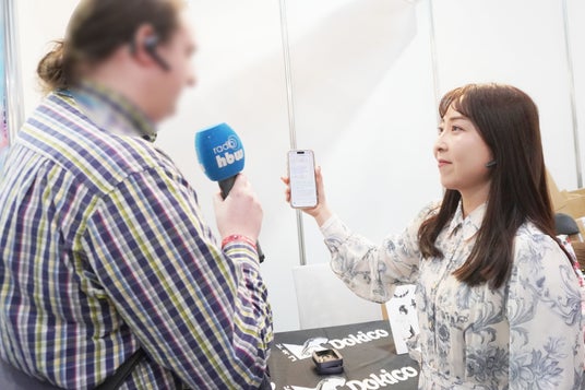 ドイツの現地メディアからの取材撮影に対応する、嶋永のの氏。