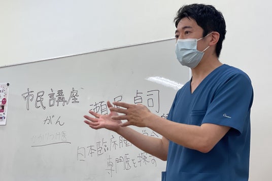 市民向けの講座を行う、がん専門瀬尾医師