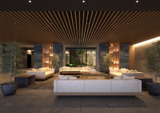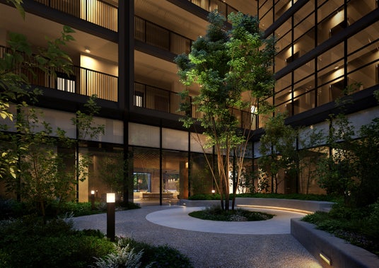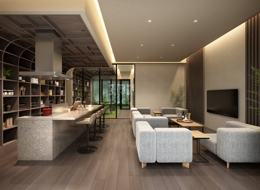 当物件は、5,865平方メートル 超の敷地面積を活かした充実した共用空間を用意、凛とした安らぎを享受できる迎賓空間「ライトラウンジ」や、多彩に利用が可能なサードプレイス「マルチベース」、幅広いジャンルの蔵書を備え学習やテレワークに最適な「ライブラリー」を揃えました。さらに、多目的に使用できるコミュニティスペース「パーティーシネマ」、ゲストをもてなし悠々としたひとときを過ごせる「ゲストルーム」、日常に緑の潤いを添える「中庭」を配し、住まう方のコミュニケーションに寄与します。また、敷地南側に提供公園を整備し、竣工後に海老名市へ無償譲渡する予定であり、地域全体の住環境向上にも貢献してまいります。