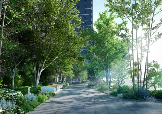 プロムナードは、豊富な植栽を設けることで、心地の良い地域に開かれた憩いの場を創出します。