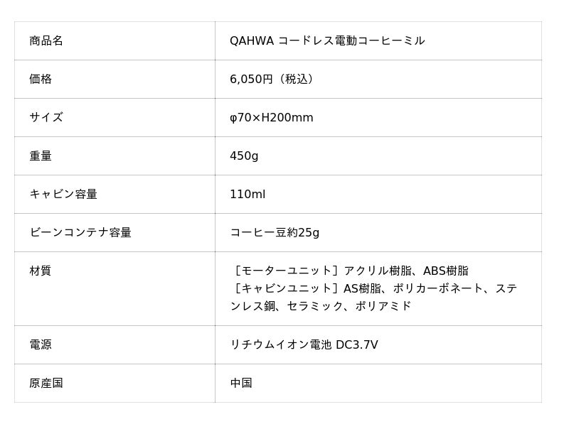 「QAHWA コードレス電動ミル」を2026年2月に発売しました。