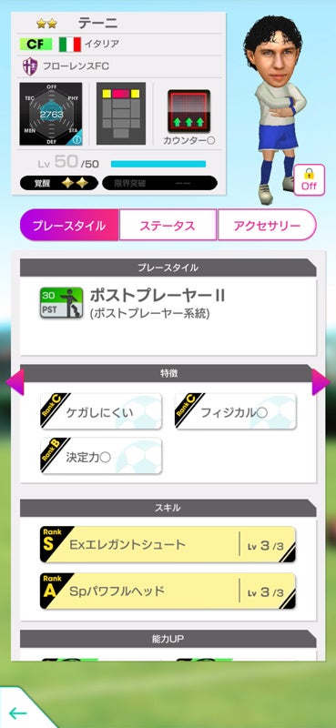 今回の強化選手はイタリアからやってきた「テーニ」選手です。なお、81日目以降で、 “STAR CHALLENGE”でしか獲得できない新スキル「Exフォートレスシュート」が手に入ります。