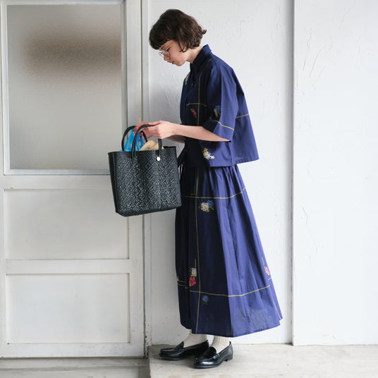 本コレクションでは、アーカイブから厳選した図案を、クロスステッチ風の刺繍で表現をしたリボン付きギャザーブラウスやフレアスカートなどをラインアップしております。やわらかな色彩と立体感のある刺繍が魅力のアイテムを通して、日常のスタイリングに自然に溶け込むSAJOUの世界観を取り入れたコーディネイトをご提案いたします。