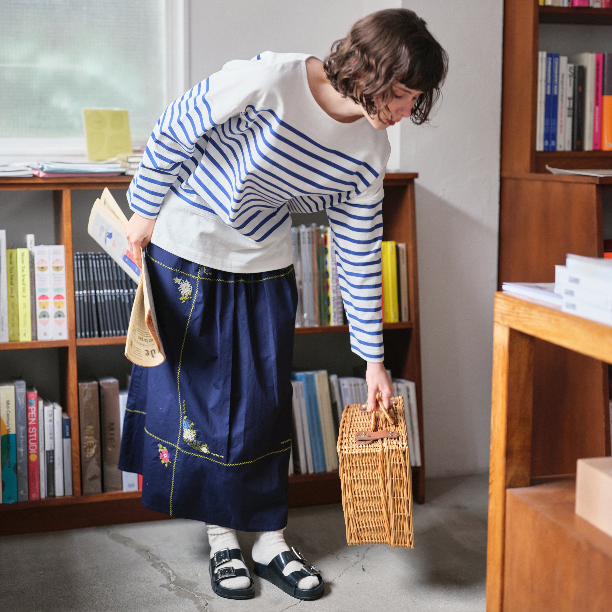 ラインブラウス ¥11,990、ラインスカート ¥14,300