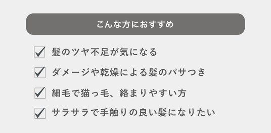 ダメージによるパサつきや広がり、うねりが気になる方、しっとりまとまる仕上がりを求める方におすすめです。