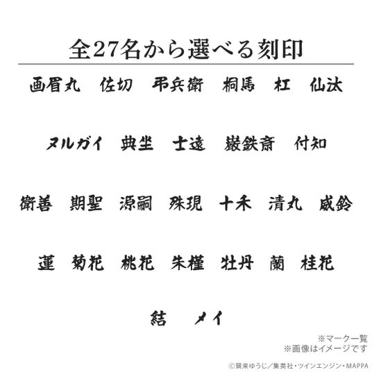 このたびの新作は、TVアニメ『地獄楽』とコラボレーションしたリング(指輪)です。内側の刻印は全27名の中からお選びいただけます。購入特典として描き下ろしイラストを使用したポストカードをプレゼントします。