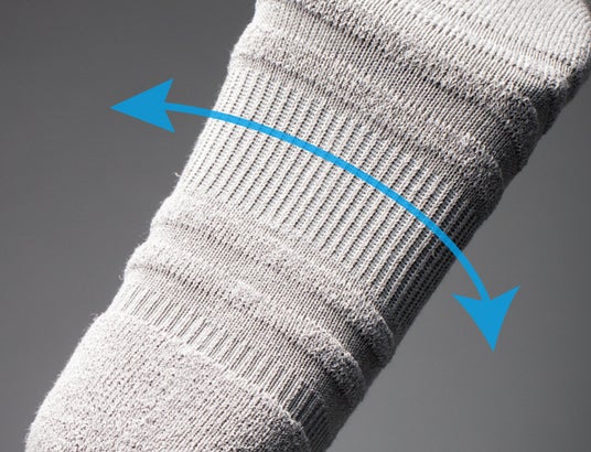 ドライな着用感と曲げ伸ばしやすさをサポートし、蒸れにくさに配慮しています。