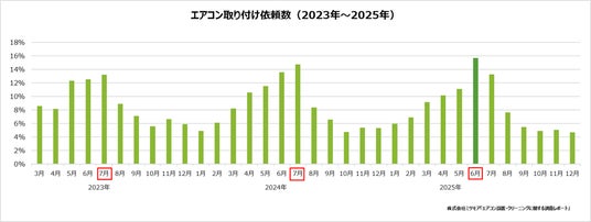 ・猛暑・二季化の影響で進むエアコン設置依頼の“早期化” 依頼は「6月」に集中、料金ピークは「7月」に