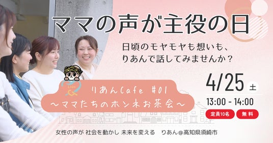 一般社団法人日本シングルマザー支援協会(代表理事:江成道子)は、高知県須崎市より委託を受け運営するサテライトオフィス『りあん』にて、2026年4月25日(土)、「りあんCafe #01 ママたちのホンネお茶会」を開催いたします。