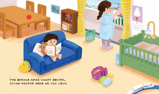 こたくんはもうすぐお兄ちゃんになります。「ももたろう」の絵本を読んでいたら、とんでもないことに気づいてしまいます!