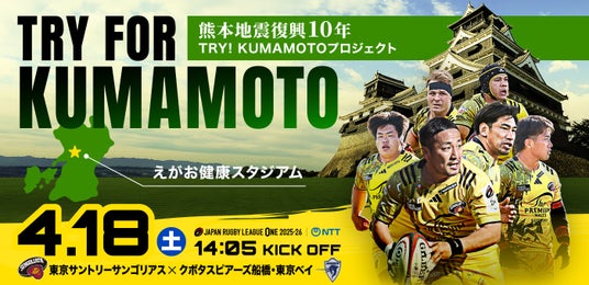 東京サントリーサンゴリアスは、2026年4月18日(土)に熊本県・えがお健康スタジアムで行われるホストゲーム「NTT JAPAN RUGBY LEAGUE ONE 2025-26 第15節 クボタスピアーズ船橋・東京ベイ戦」を、トランスコスモス株式会社をマッチデーパートナーに迎え、『トランスコスモスマッチデー』として実施いたします。