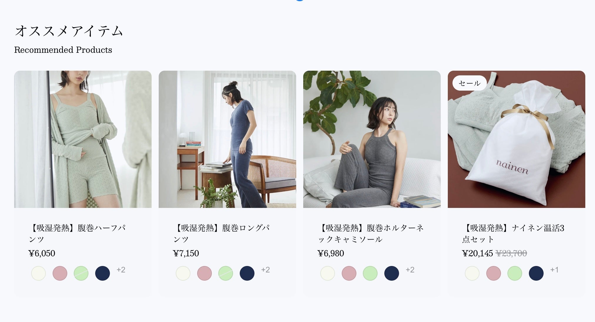 新しくナイネンのホームページもリニューアル!カラーバリエーションも見やすくなり、更にお買い物が楽しくなること間違いなしです。