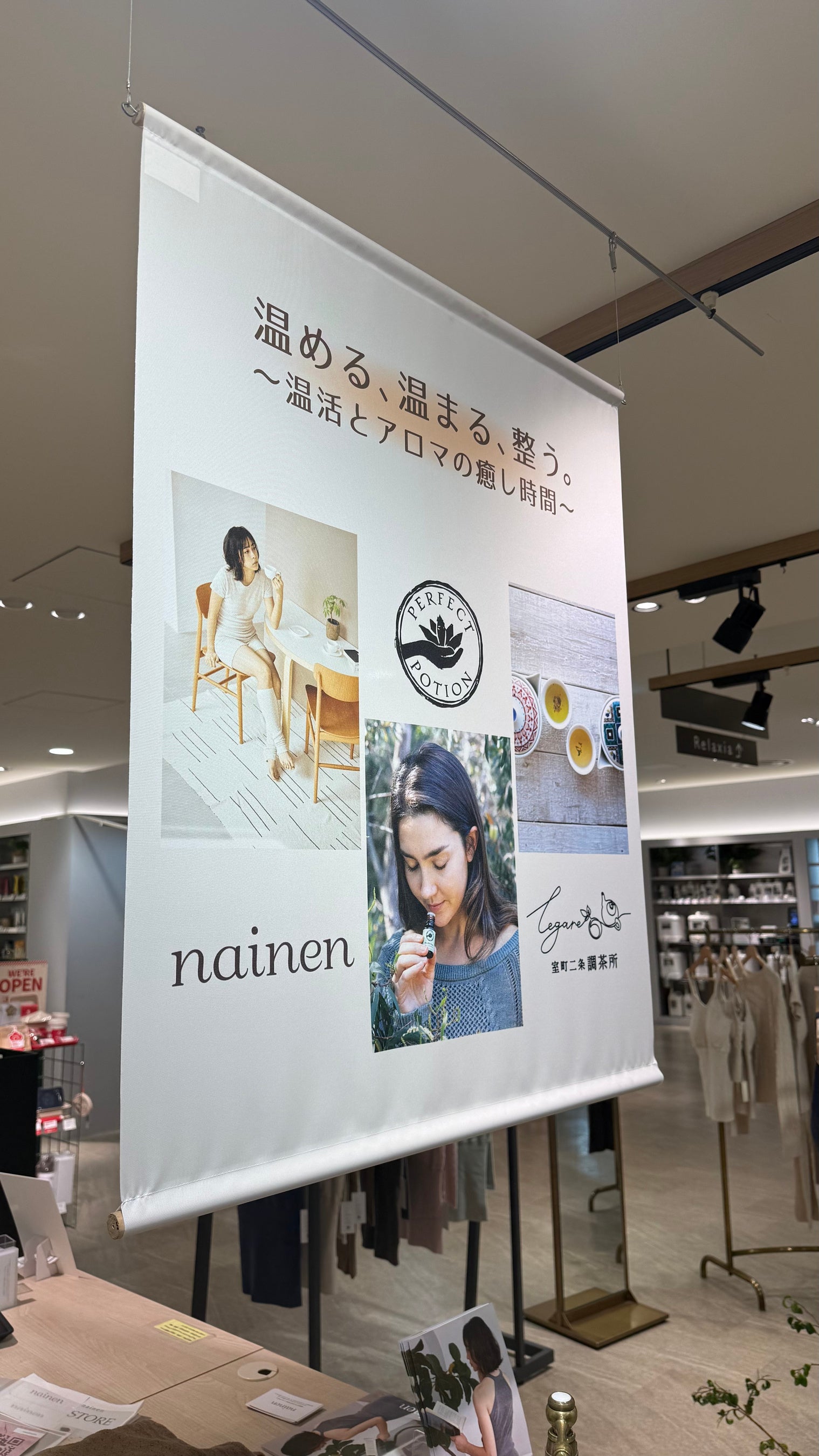 3ブランド合同で阪急梅田本店3F「ウエルネスイベント」にて開催したポップアップイベントは沢山の方にお越し頂き、nainen(ナイネン)の「吸湿発熱」素材でもちもちっとした柔らかい肌触りと愛されデザインを体感していただけました。お越し頂いた方、ありがとうございました!