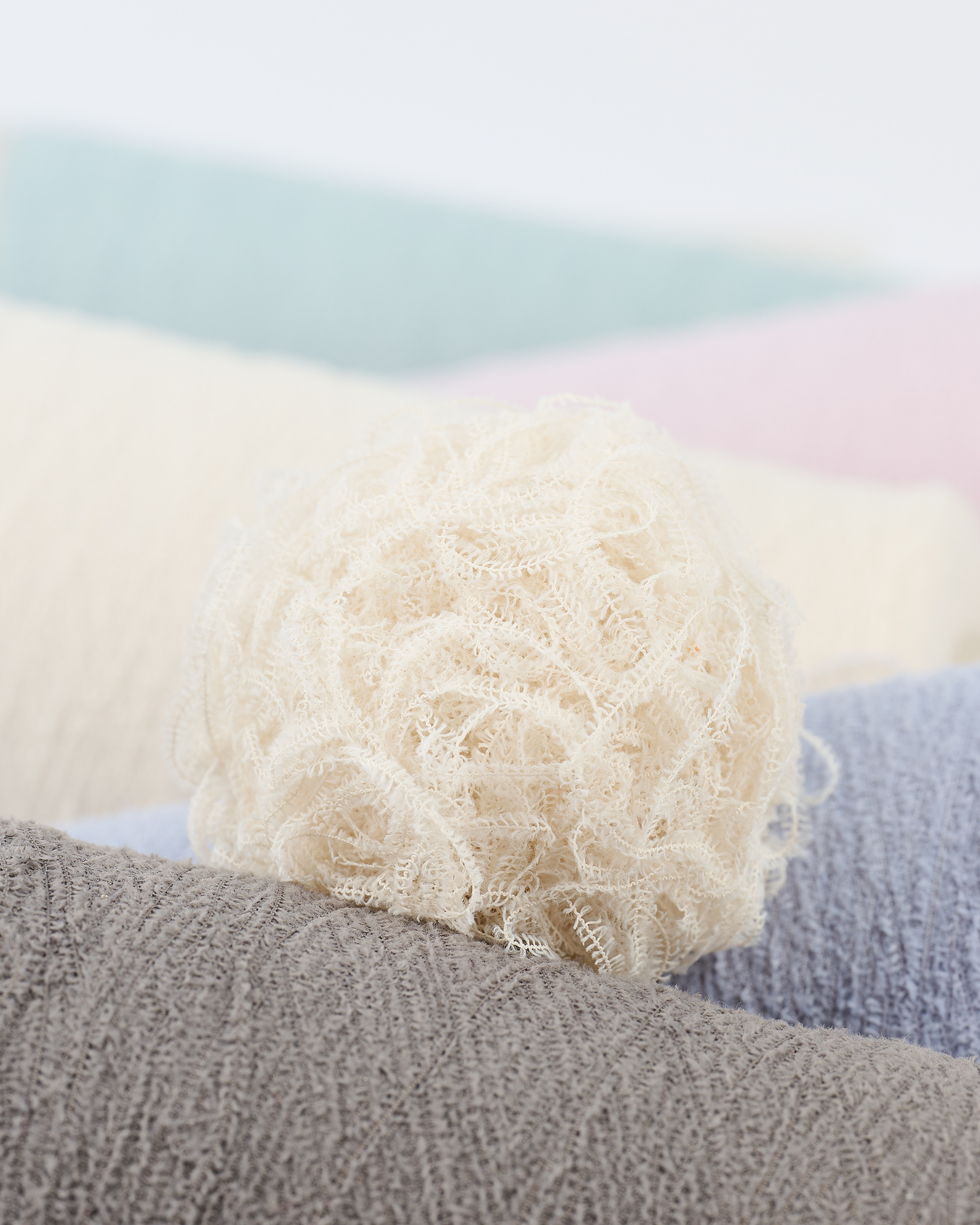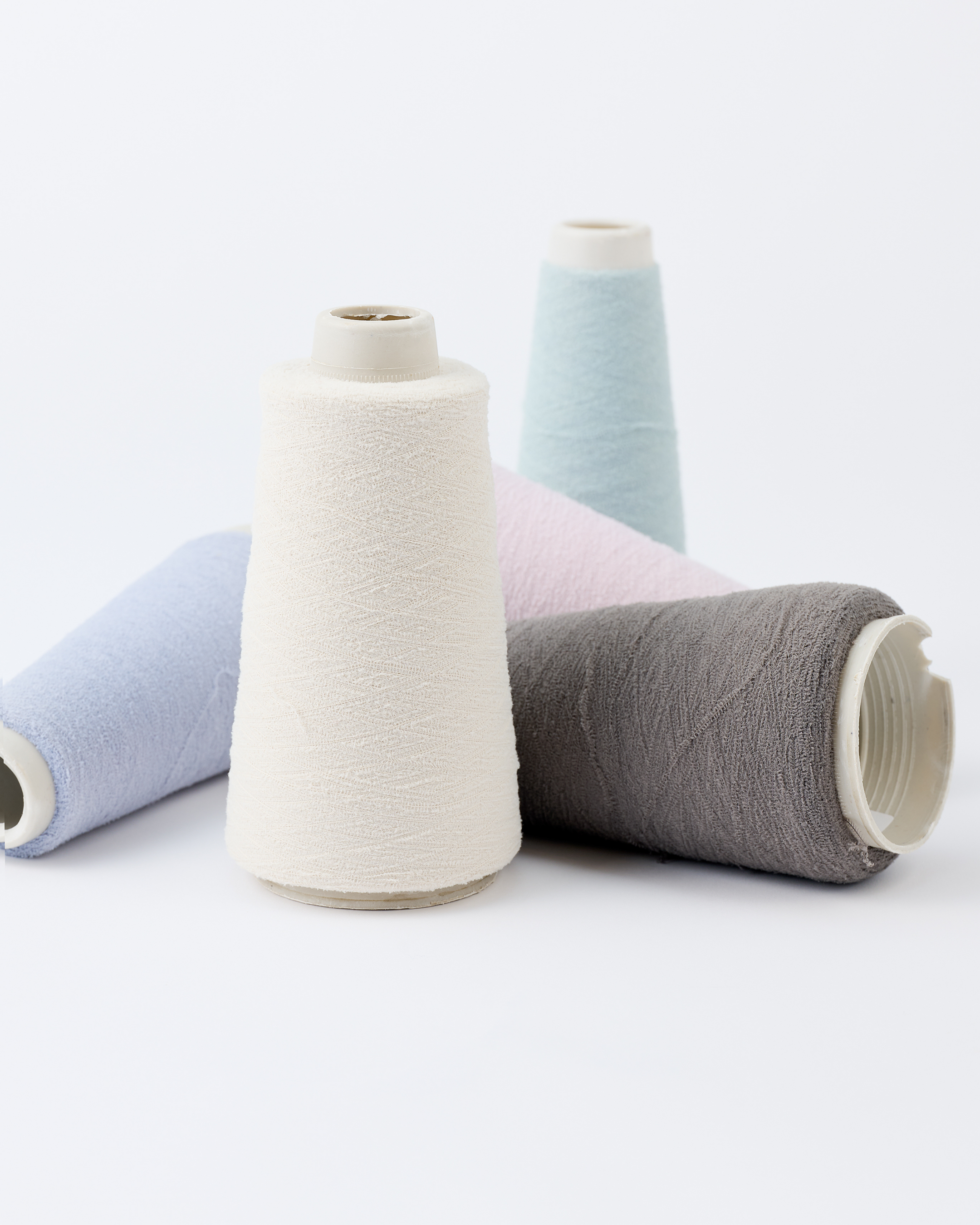 1.シェニールヤーン糸(セラミックスを練りこんだ羽根のような糸なので空気を含んで柔らかい)