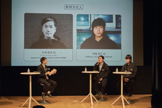 テクノロジーを「道具」から「文化」へと昇華させ、未来の景色を耕す越境的なリーダーを讃える「発明文化人」。安野 貴博 氏(参議院議員・チームみらい党首・AIエンジニア・SF作家)、引地 耕太 氏(株式会社VISIONs CEO / 一般社団法人COMMONs 代表理事)、守屋 貴行 氏(株式会社Aww / 株式会社NION 代表取締役社長)の初代受賞者3名が決定いたしました。