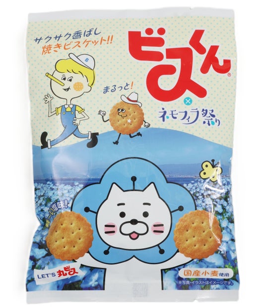 名古屋で愛され続けているビスケットお菓子「ビスくん」と、ネモフィラ祭りをイメージした特別仕様パッケージのコラボが実現しました。サクッと軽やかな食感とどこか懐かしい甘さが広がり、長年親しまれてきた「ビスくん」の変わらないおいしさを味わうことができます。ネモフィラ畑をそのまま持ち帰るような一品で、自分用やお友だちへのお土産にもぴったりです。