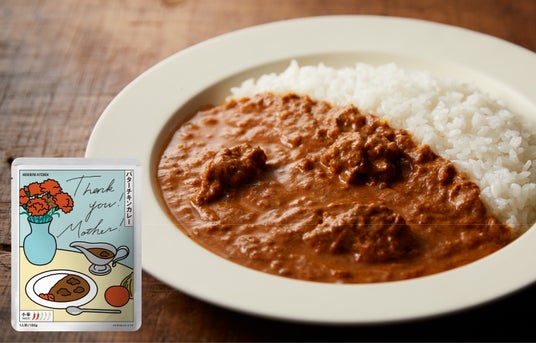 ■母の日限定パッケージ・バターチキンカレーインドで出会ったバターチキンカレーをお手本にしました。乳製品やカシューナッツのコクのある濃厚な味わいに、トマトの旨みも感じられる味わいが特長です。インドの定番スパイス「カスリメティ」の甘い香りが食欲をそそる一品です。【価格:490円(税込)、内容量:180g、辛さ:小辛】